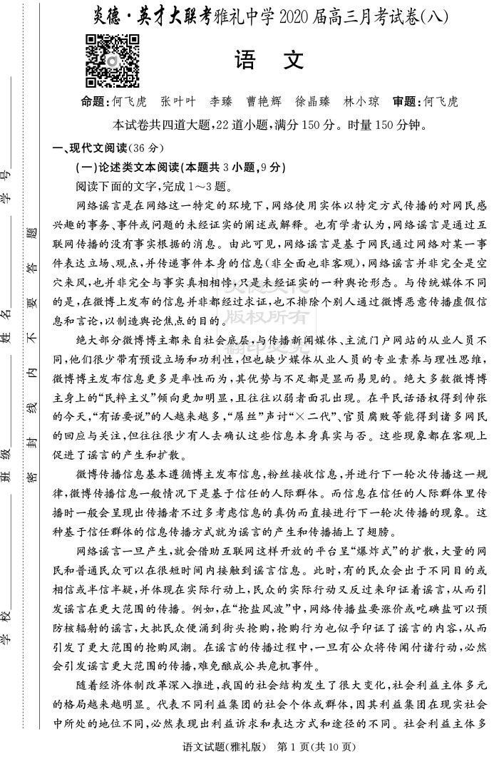 2025湖南師大附中新高考考前小題訓練·語文