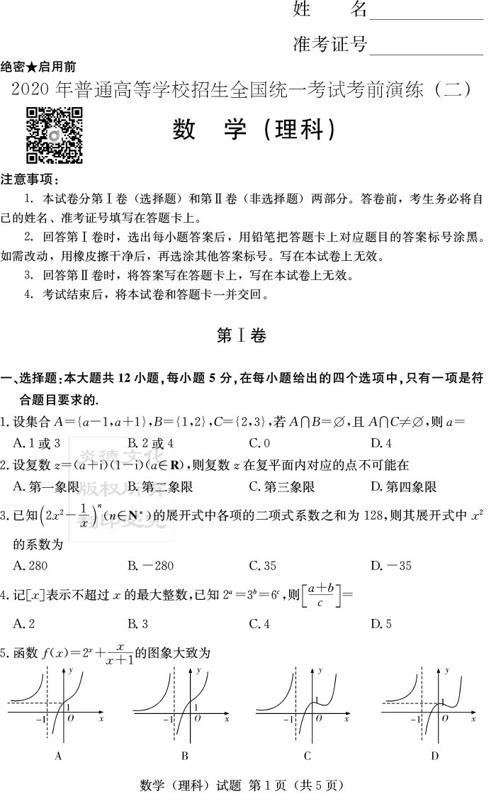下一篇:【理綜】2020年普通高等學校招生全國統一考試考前演練(二)
