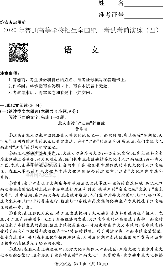 上一篇:【英語】2020年普通高等學校招生全國統一考試考前演練(四)