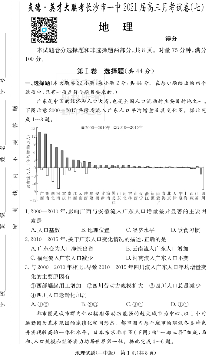 2025長郡中學新高考考前小題沖刺訓練·地理