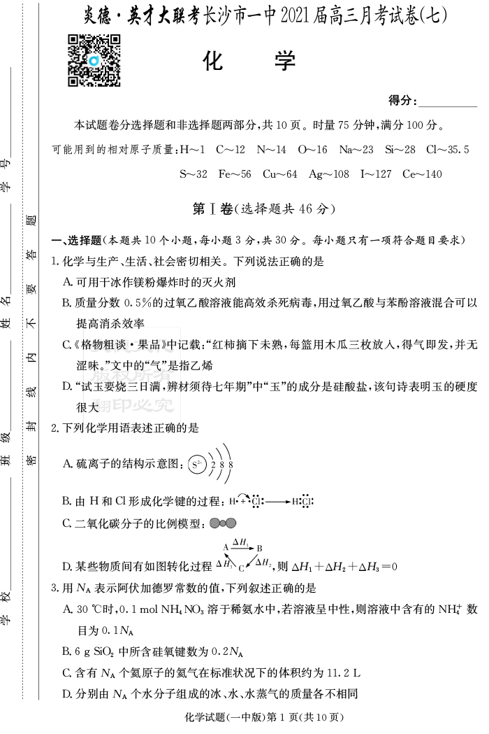2025長郡中學新高考考前小題沖刺訓練·化學