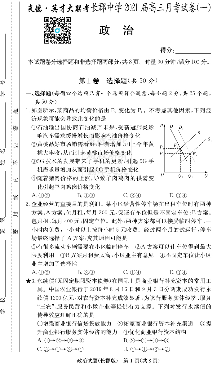 2025長郡中學新高考考前小題沖刺訓練·政治