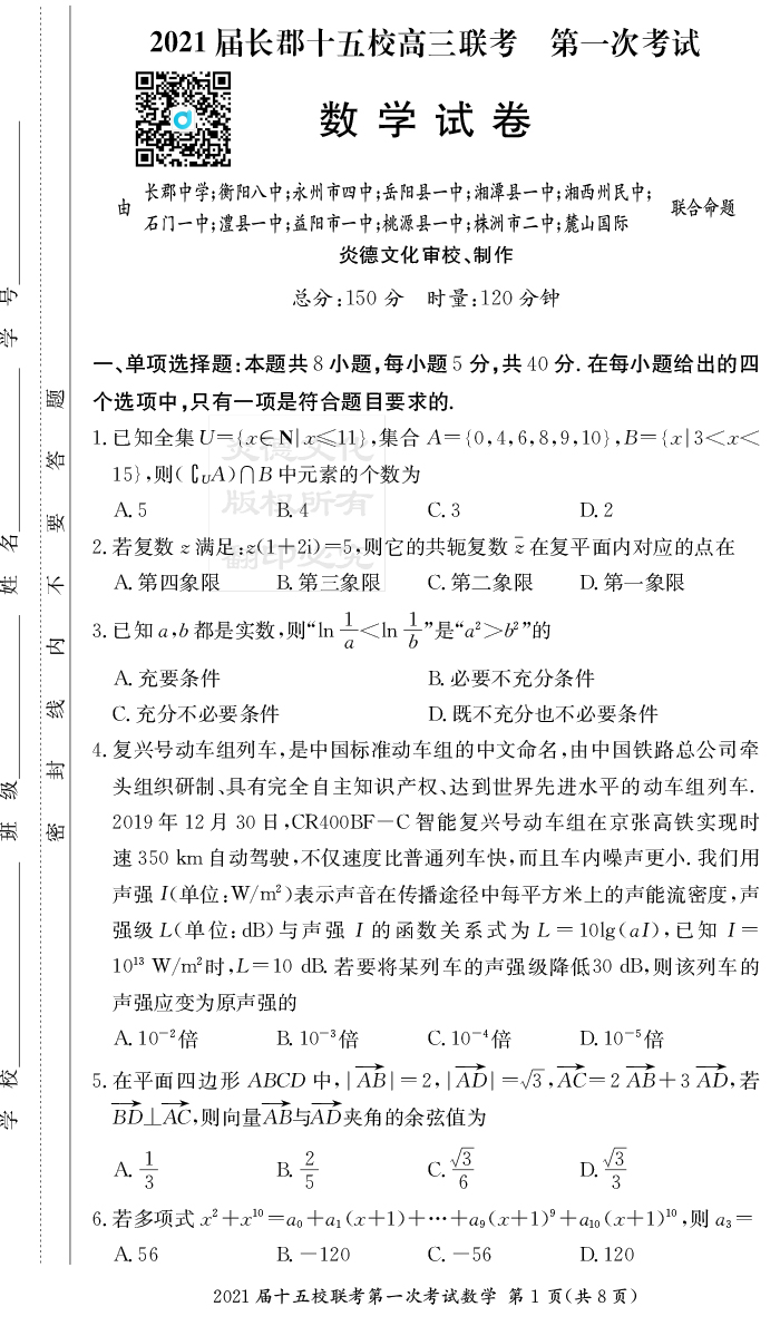 上一篇:【生物】炎德英才大聯考2021屆長郡中學高三7次月考(十五校聯考一)
