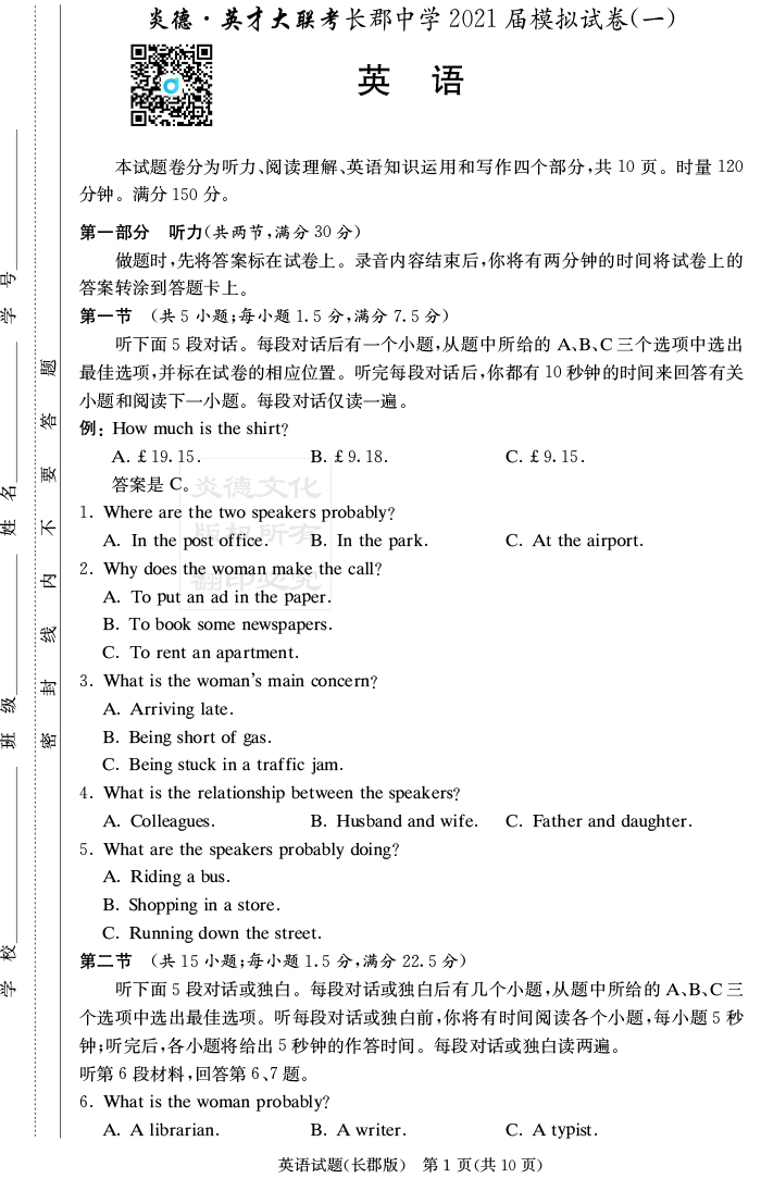 下一篇:【語文】炎德英才大聯(lián)考2021屆長郡中學高三9次月考(模擬一)