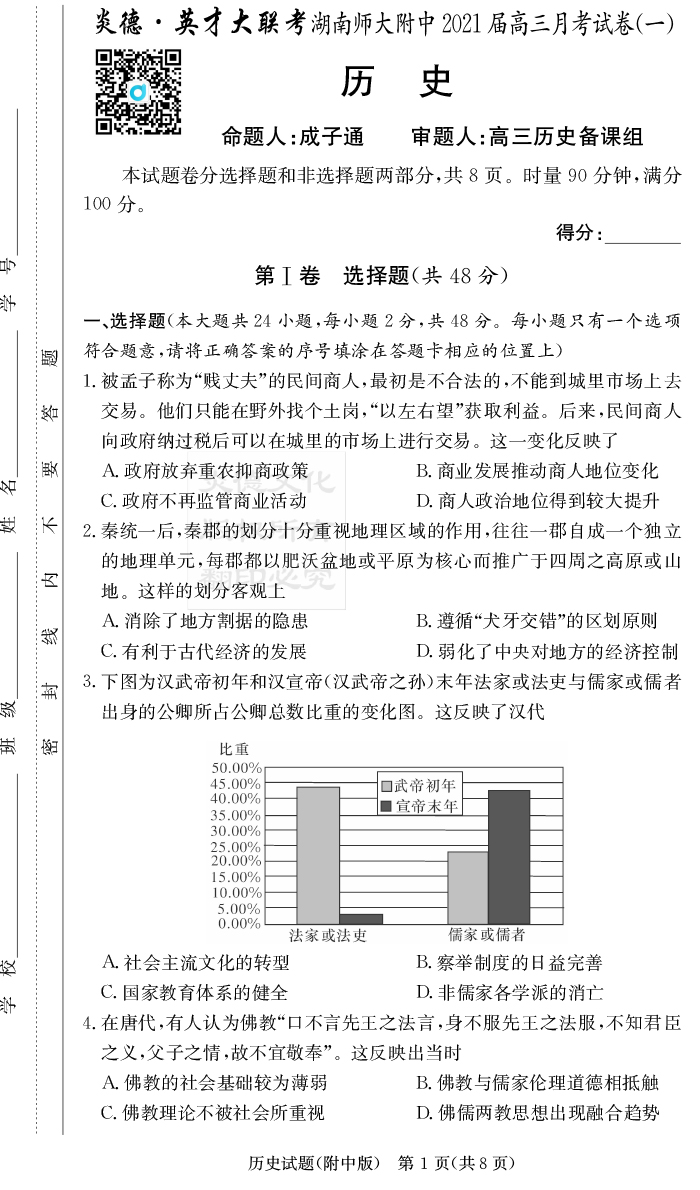 2025長郡中學新高考考前小題沖刺訓練·歷史
