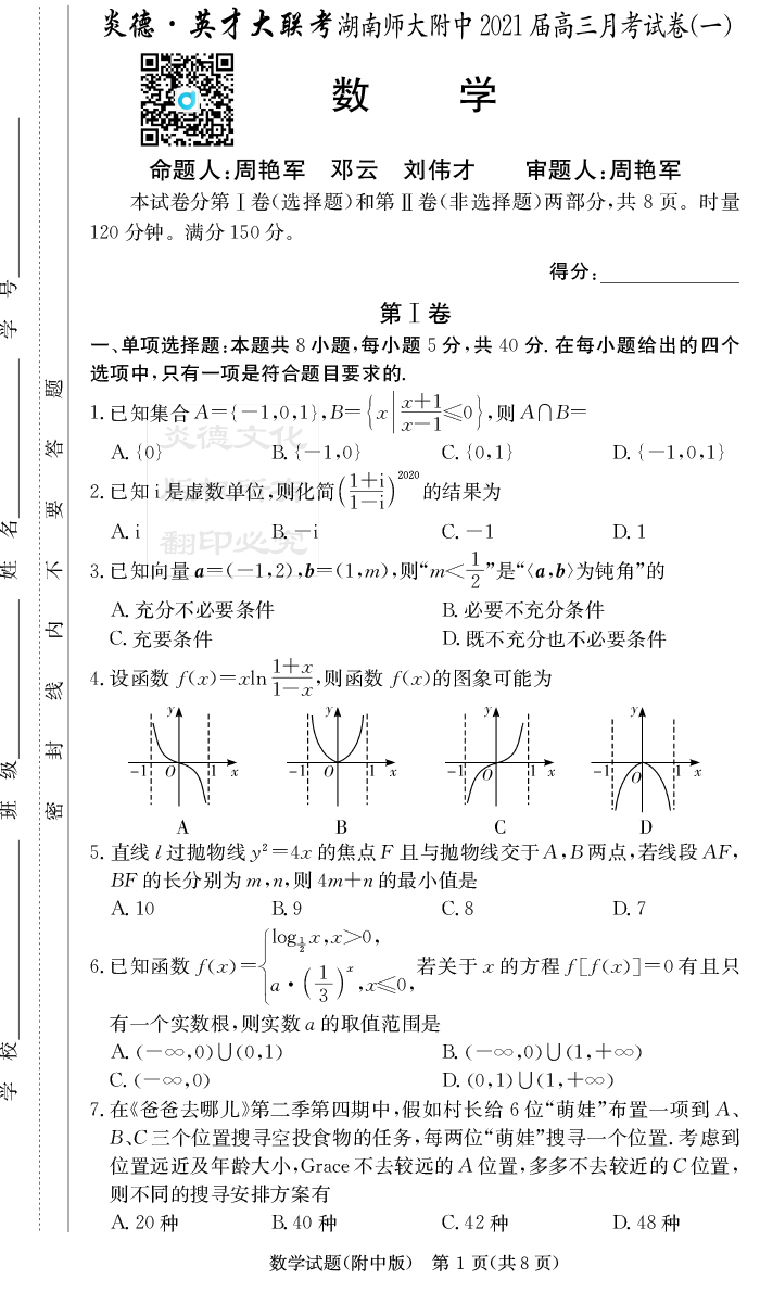 上一篇:【生物】炎德英才大聯考2021屆湖南師大附中高三1次月考