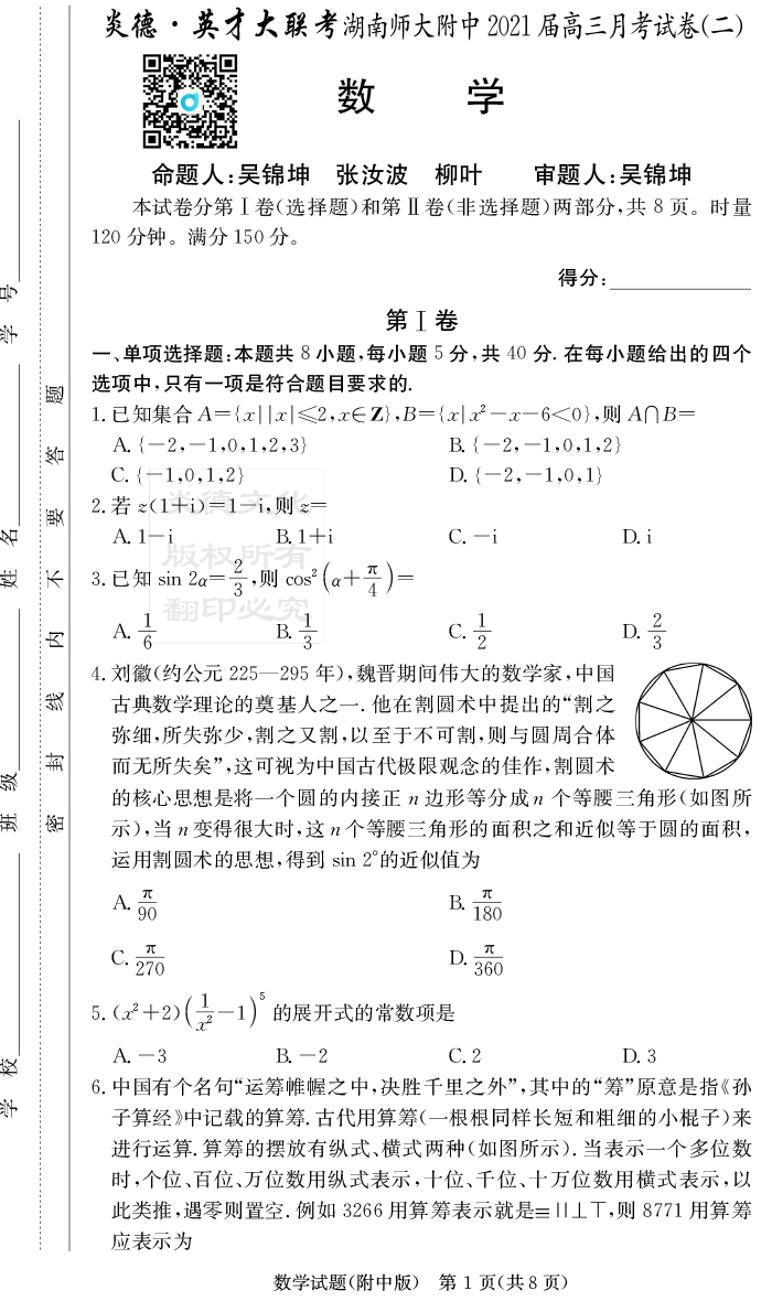 2025長郡中學新高考考前小題沖刺訓練·數學