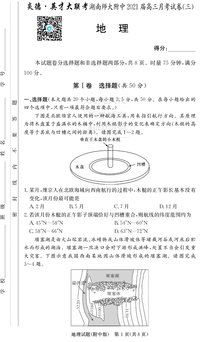 2025湖南師大附中新高考考前小題訓練·地理