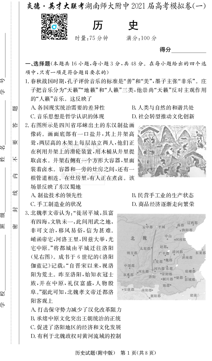 2025湖南師大附中新高考考前小題訓練·歷史