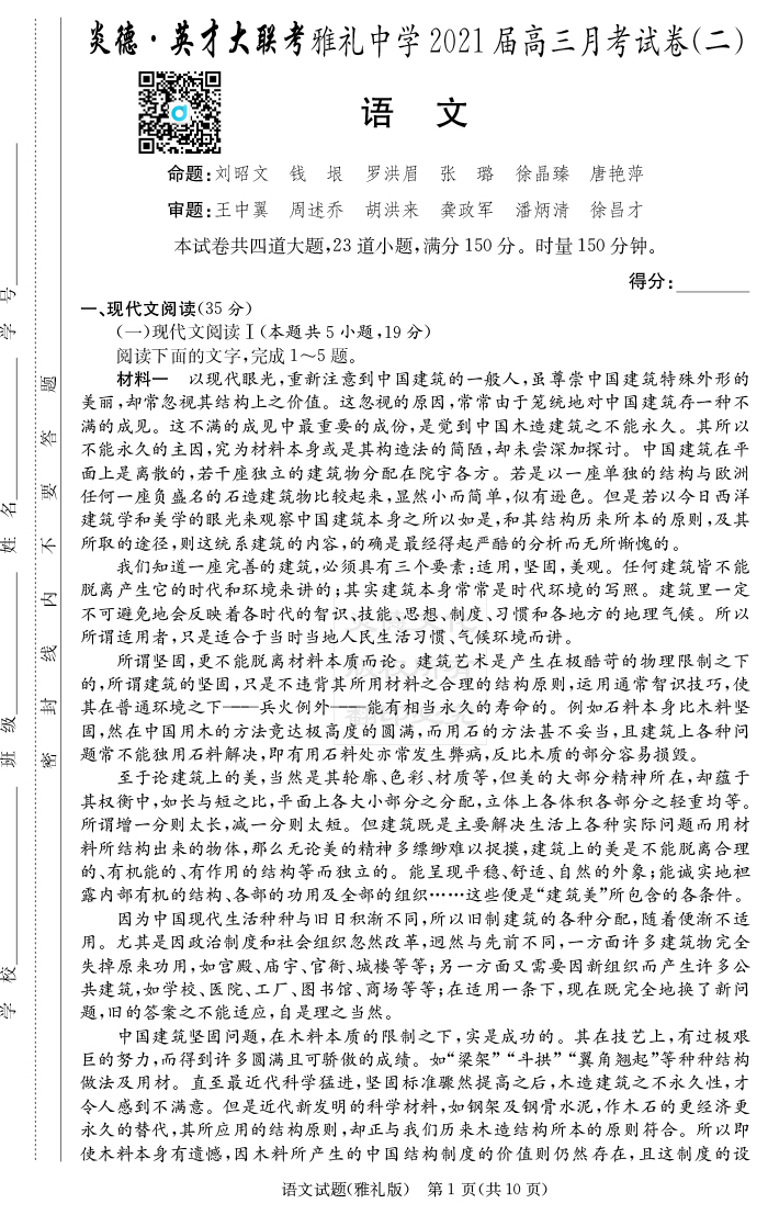 2025湖南師大附中新高考考前小題訓練·語文