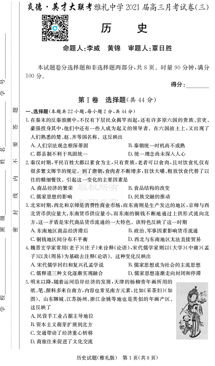 2025長郡中學新高考考前小題沖刺訓練·歷史