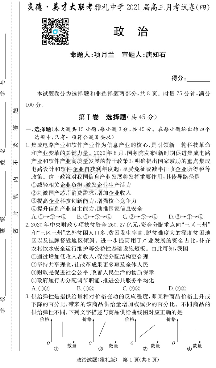 2025長郡中學新高考考前小題沖刺訓練·政治