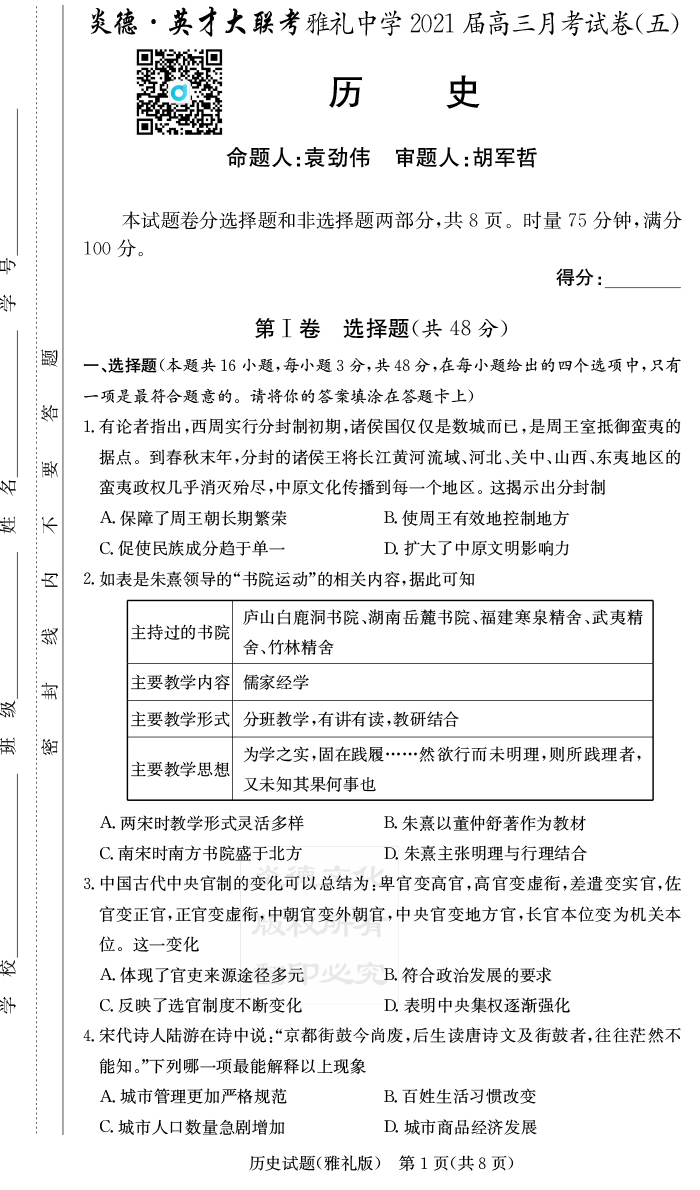 2025長郡中學新高考考前小題沖刺訓練·歷史
