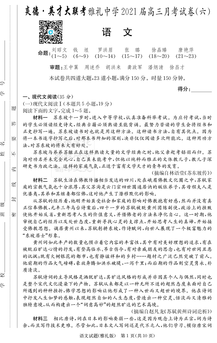 資源類別: | 名校月考 | |
