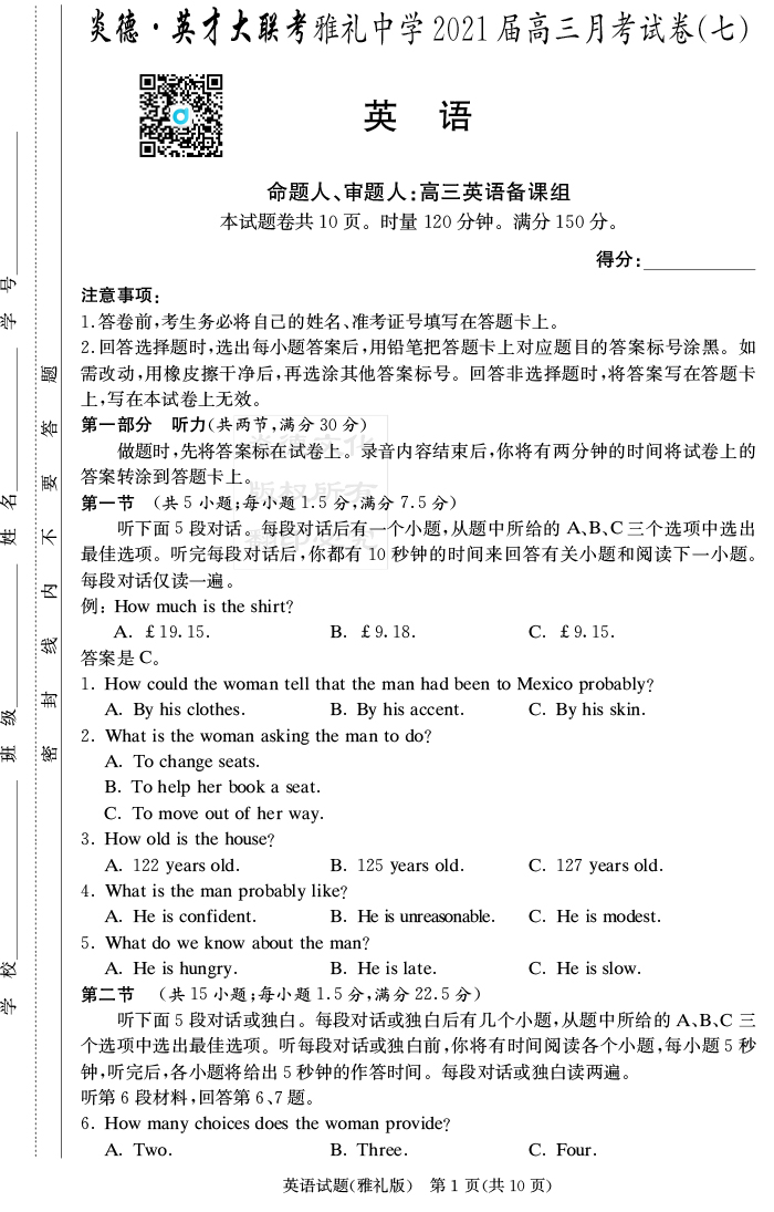 下一篇:【語文】炎德英才大聯考2021屆雅禮中學高三7次月考