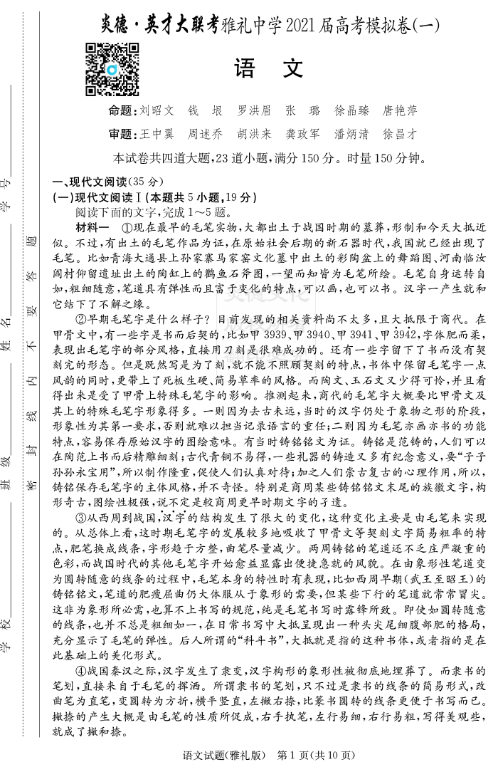 2025長郡中學新高考考前小題沖刺訓練·語文