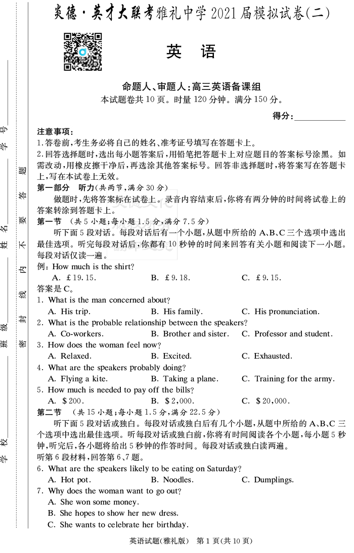 下一篇:【語文】炎德英才大聯考2021屆雅禮中學高三10次月考(模擬二)