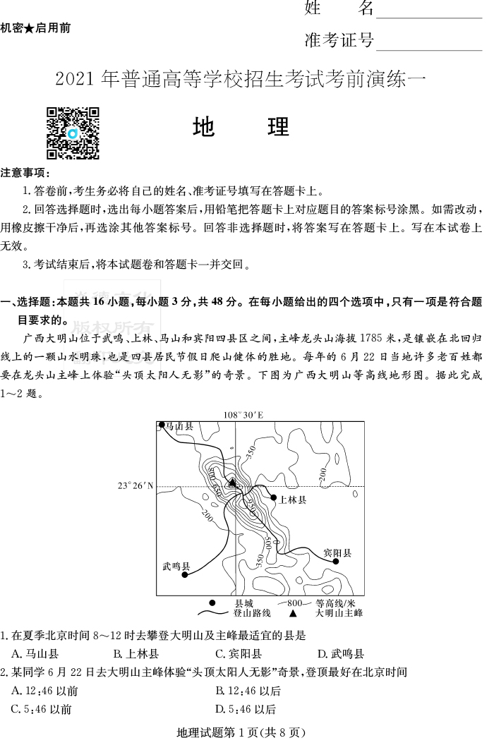 下一篇:【化學】2021年普通高等學校招生全國統一考試考前演練(一)