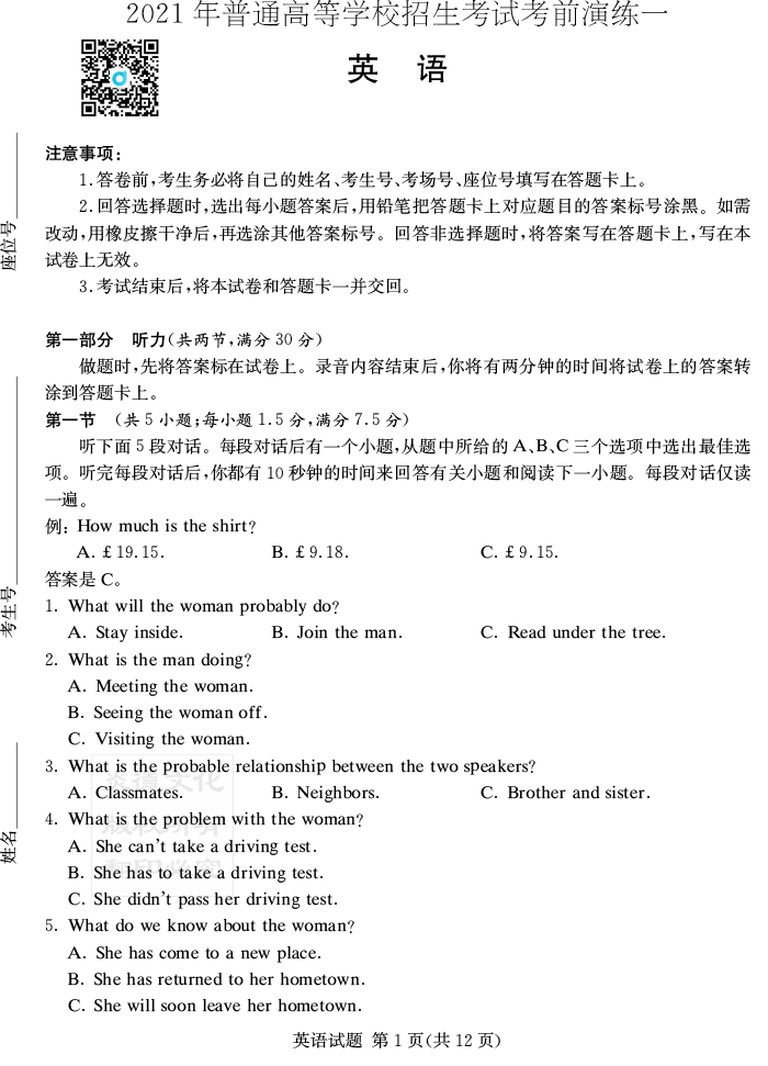 下一篇:【語文】2021年普通高等學校招生全國統(tǒng)一考試考前演練(一)