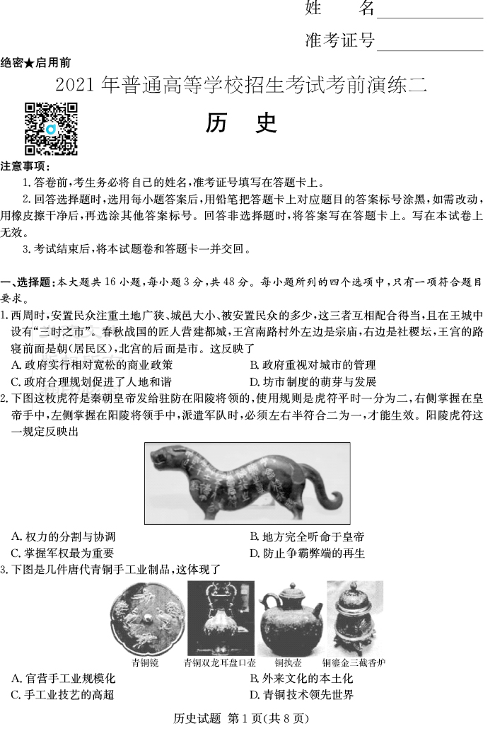 下一篇:【生物】2021年普通高等學校招生全國統一考試考前演練(二)