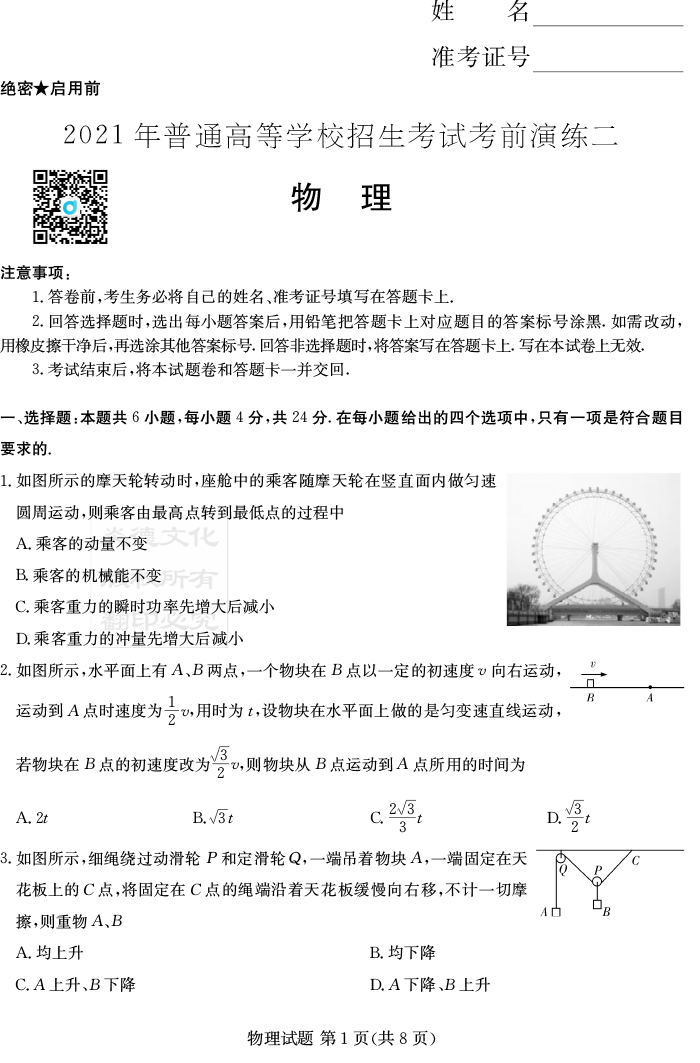 上一篇:【數學】2021年普通高等學校招生全國統一考試考前演練(二)
