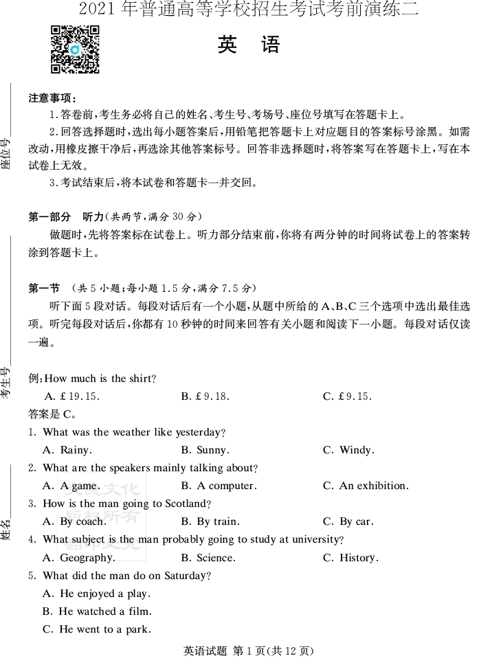 下一篇:【語文】2021年普通高等學校招生全國統(tǒng)一考試考前演練(二)