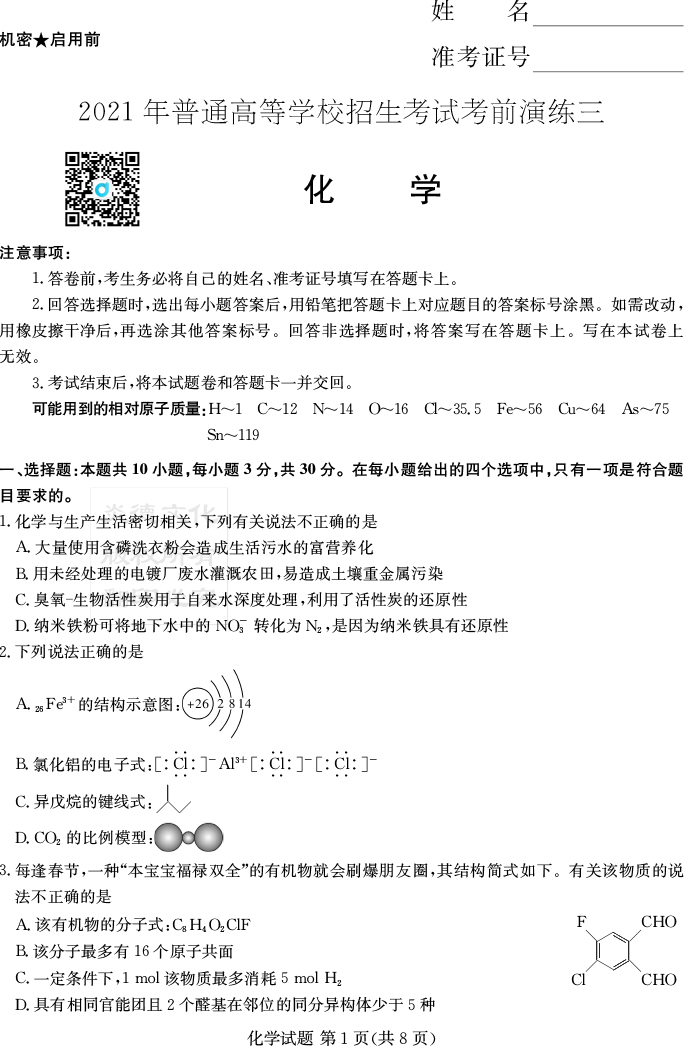 下一篇:【歷史】2021年普通高等學校招生全國統一考試考前演練(三)