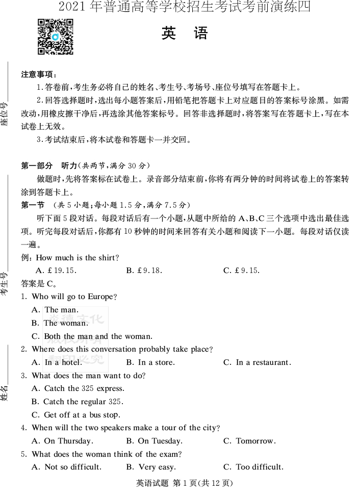 下一篇:【語文】2021年普通高等學校招生全國統一考試考前演練(四)