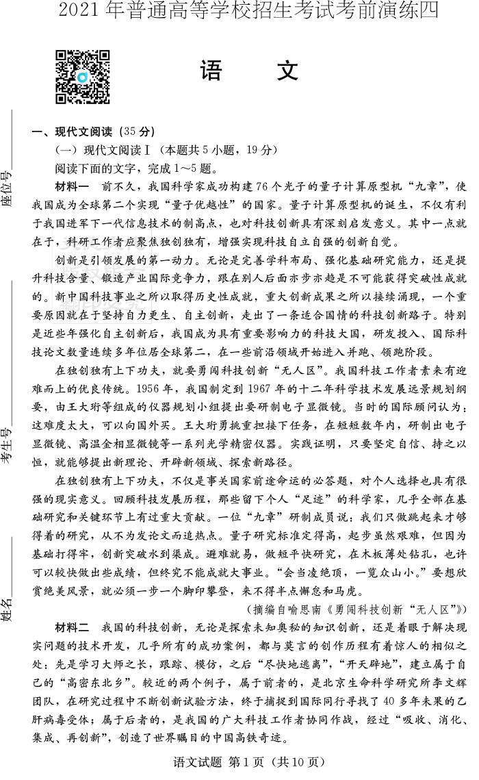 下一篇:【政治】2021年普通高等學校招生全國統一考試考前演練(四)