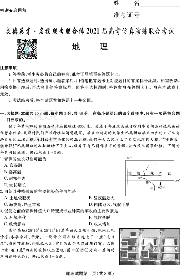 上一篇:【政治】2021年普通高等學校招生全國統一考試考前演練(四)