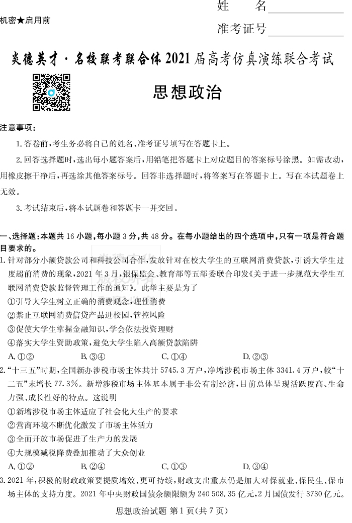 下一篇:【地理】2021年普通高等學校招生全國統(tǒng)一考試考前演練(六)
