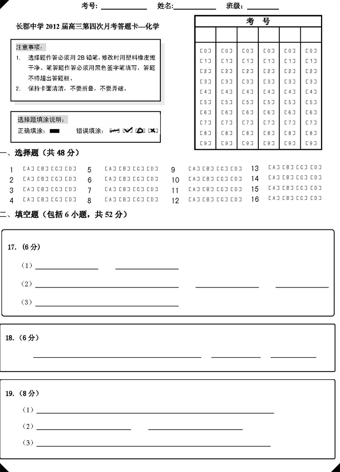 上一篇:炎德英才大聯(lián)考2012屆長郡中學(xué)高三第2次月考答題卡