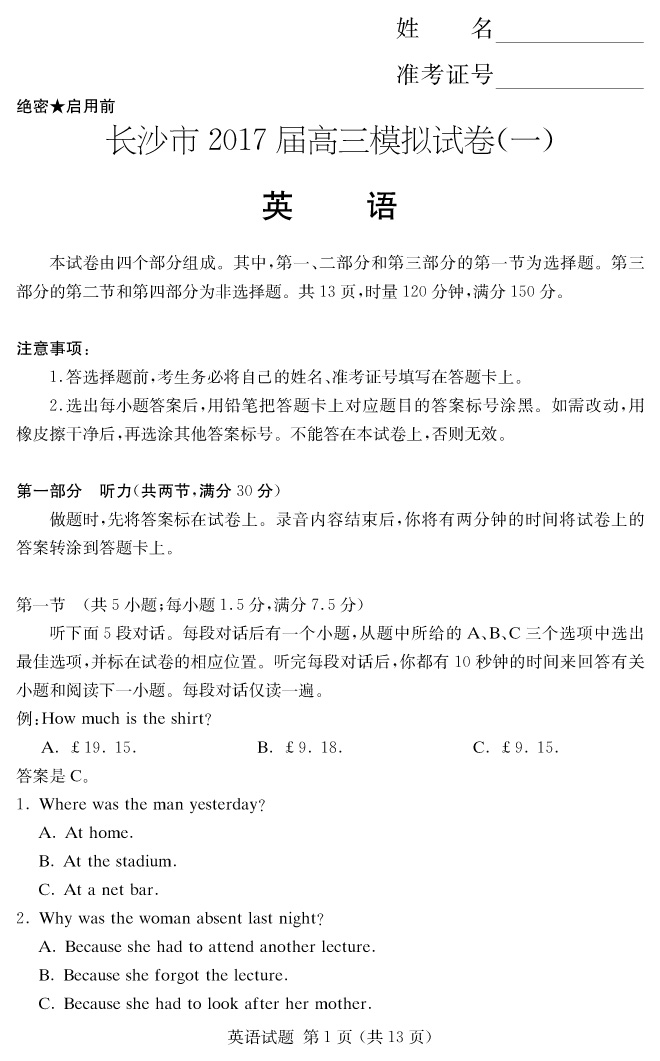 下一篇:【語文】長沙市2017屆高三模擬考試(一)