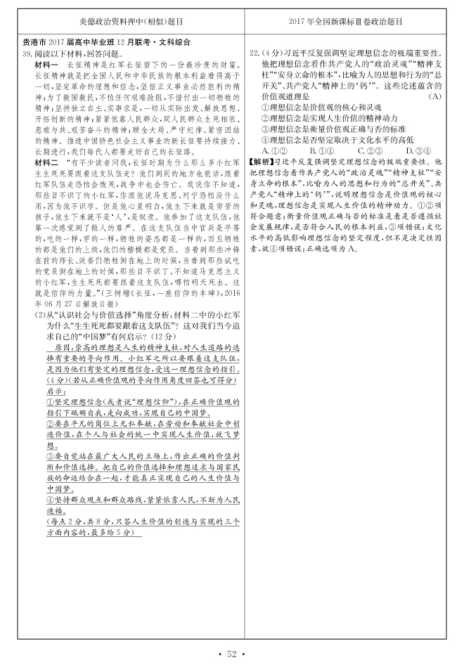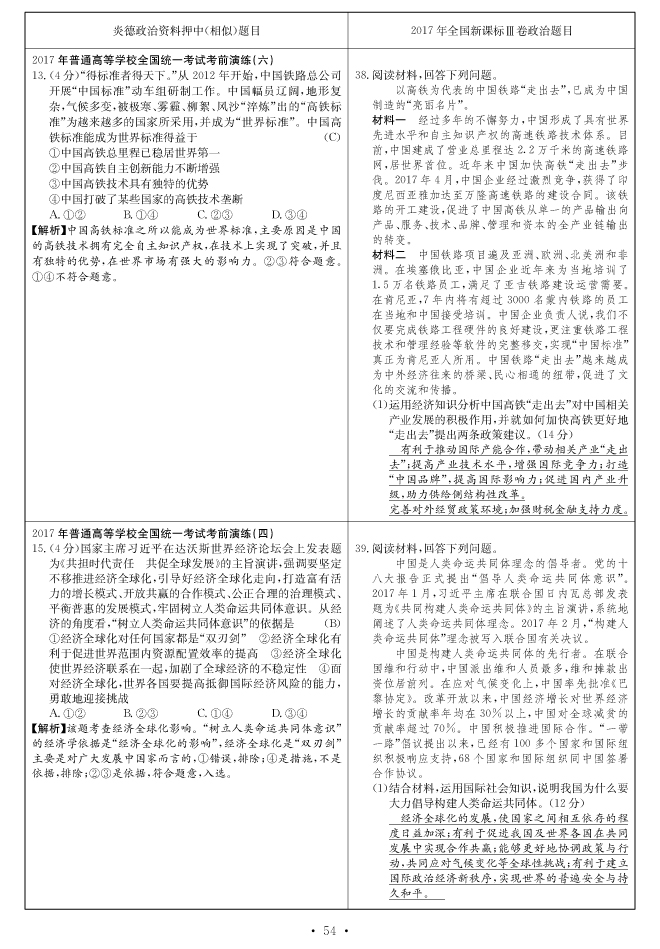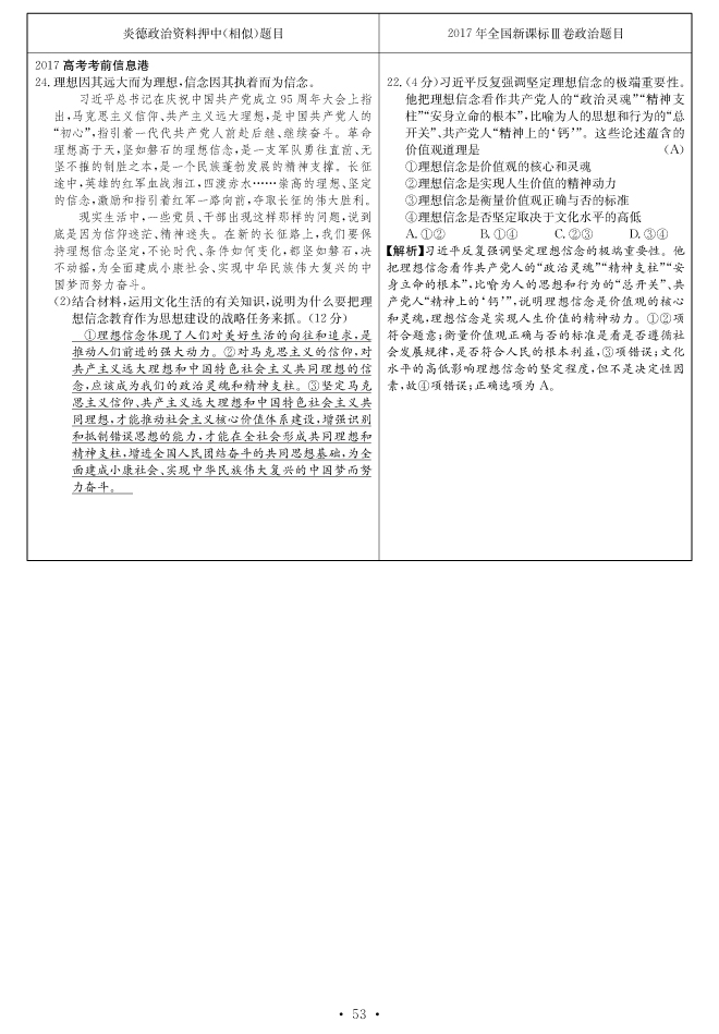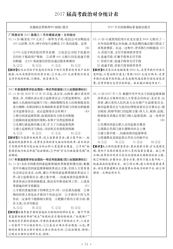 2017高考全國(guó)卷Ⅲ對(duì)分表-政治