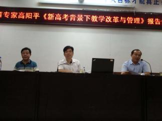 高陽平先生做《新高考背景下教學(xué)改革與管理》報(bào)告,并與該校領(lǐng)導(dǎo)、師生展開親切交流。高校長說,教育要“放眼未來,立足當(dāng)下”,要“以能力為主線,以問題為核心”,促進(jìn)學(xué)生德、智、體、美全面發(fā)展,學(xué)校既要拿分,更要育人,要努力為國家、為社會(huì)培養(yǎng)有用之才。特別是高一、高二階段,更應(yīng)強(qiáng)調(diào)學(xué)生個(gè)性發(fā)展,注重素質(zhì)教育,同時(shí)輔以實(shí)例對(duì)我國當(dāng)代教育教學(xué)現(xiàn)狀及存在的問題進(jìn)行了剖析。高校長淵博的學(xué)識(shí)和極富感染力的報(bào)告獲得了全場120余名教師的高度贊許和熱烈掌聲。