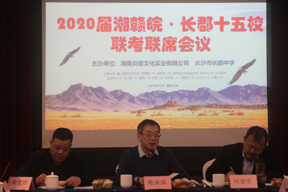 2019年12月15日上午,2020屆湘贛皖·長郡十五校聯(lián)考聯(lián)席會議在長沙成功舉行。本次會議由湖南炎德文化實業(yè)有限公司主辦,來自湖南省內(nèi)的長郡中學(xué)、麓山國際實驗學(xué)校、岳陽縣一中、桃源縣一中、石門縣一中、澧縣一中、衡陽市八中、永州市四中、湘潭縣一中、湘西州民中、株洲市二中、益陽市一中,以及江西省南昌市二中、九江市一中和安徽省合肥市八中共十五所聯(lián)盟學(xué)校,共四十余位校領(lǐng)導(dǎo)、教務(wù)主任或年級主任參加了本次會議。