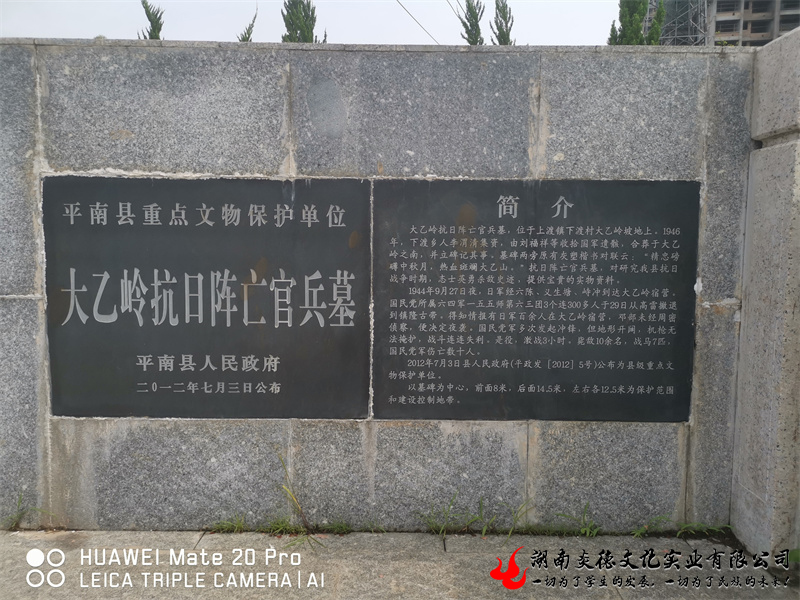 1944年9月29日,日軍占領平南縣。當日,國民革命軍64師63團三個連夜襲駐扎在大乙嶺的日軍。斃敵十余而陣亡百多人多人。此后月余,縣鄉抗日自衛隊在牛路嶺、良竹村、月三橋、平塘及社垌等地連續襲擊日軍,奕戰死十余人。次年中秋,下渡人李渭清集資,由劉福祥收拾陣亡軍民遺骨合葬于大乙嶺之南,墓前立碑記事,左右刻有對聯:“精忠磅礴中秋月 熱血斑斕大乙山",此墓前當地民眾稱為”百骨墳”。
