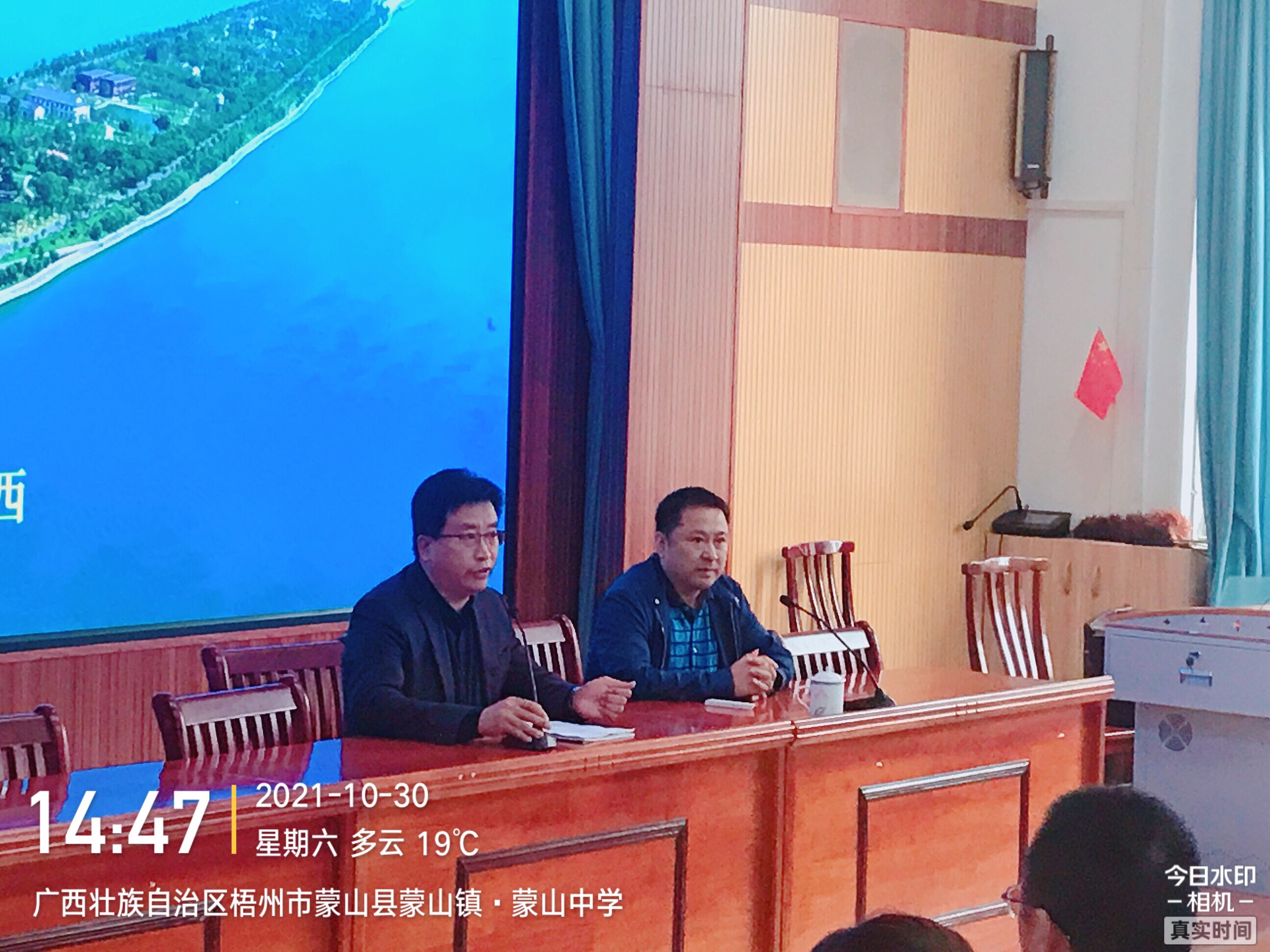 10月30日中午,驅(qū)車兩個多小時,從柳州趕往蒙山中學,蒙山中學校長馮兆民高度重視,親自主持講座,并感謝炎德文化提供的向湖南名校專家學習的機會。