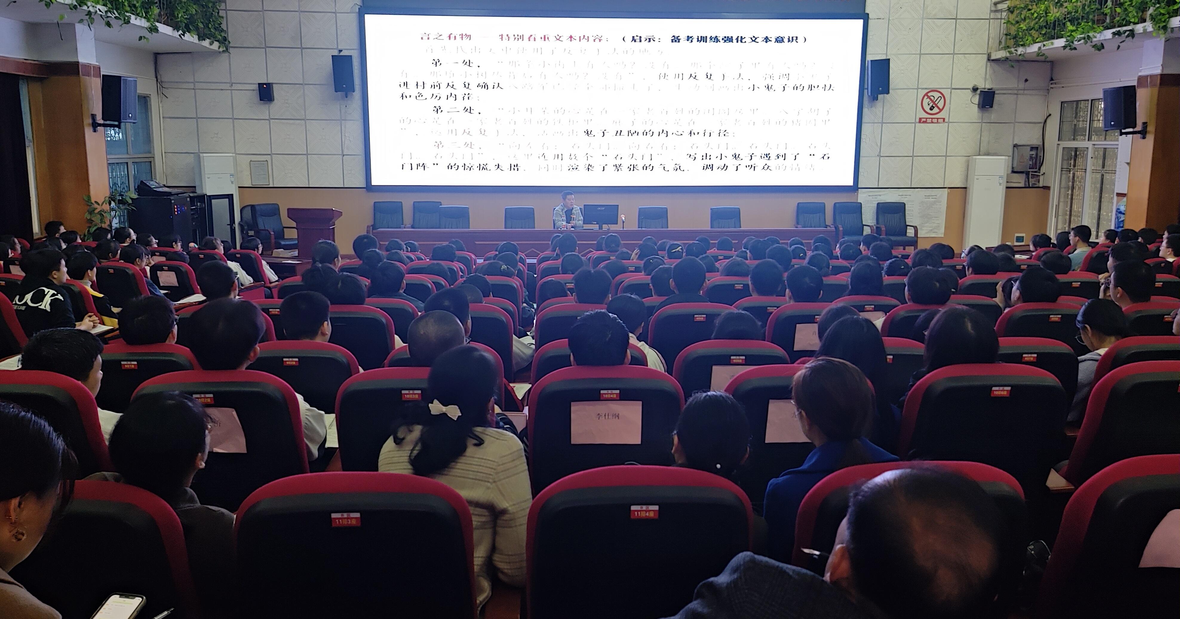 高三年級(jí)學(xué)生及全體語文老師到場聆聽、學(xué)習(xí)。
