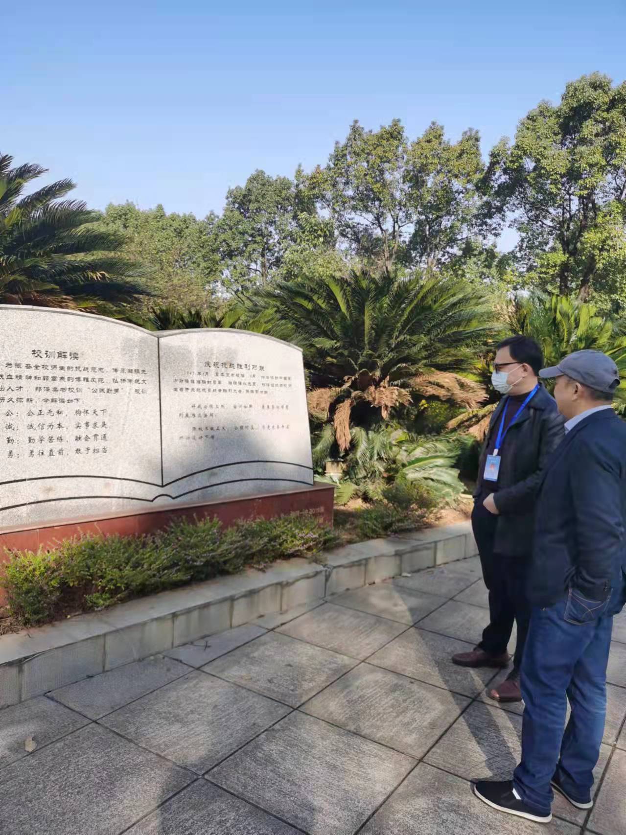 何總與教育專家在湘陰縣湘陰第一中學校門口合影