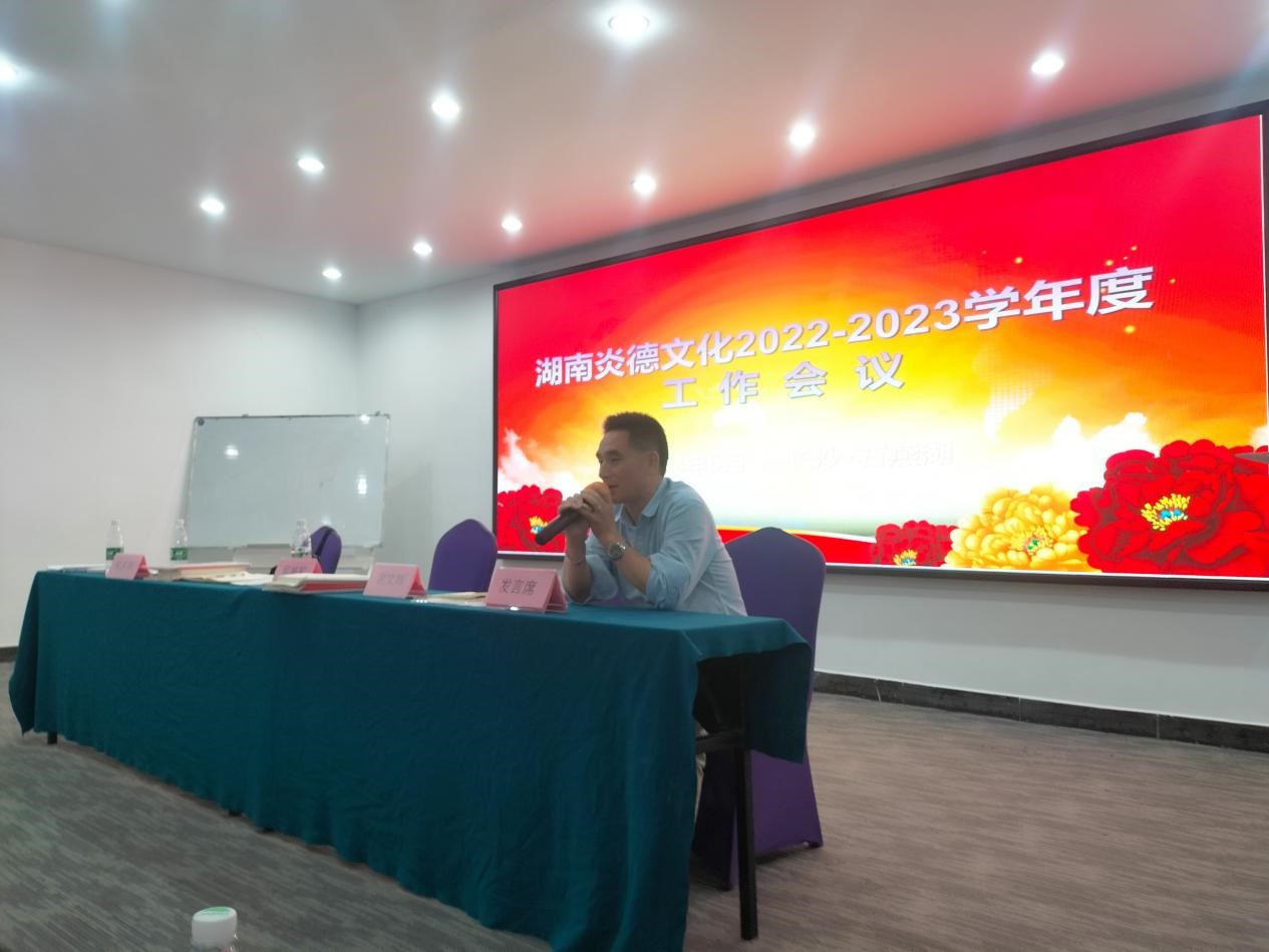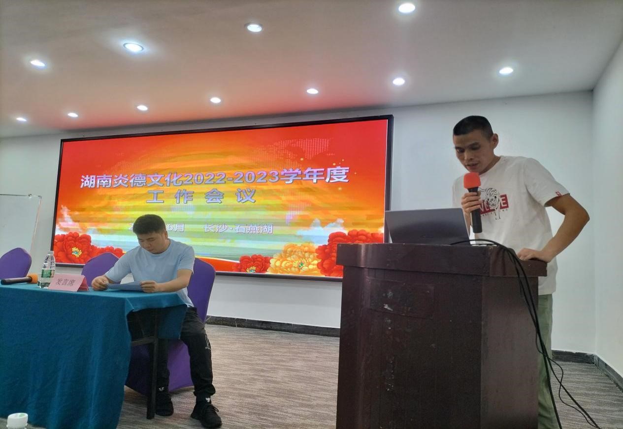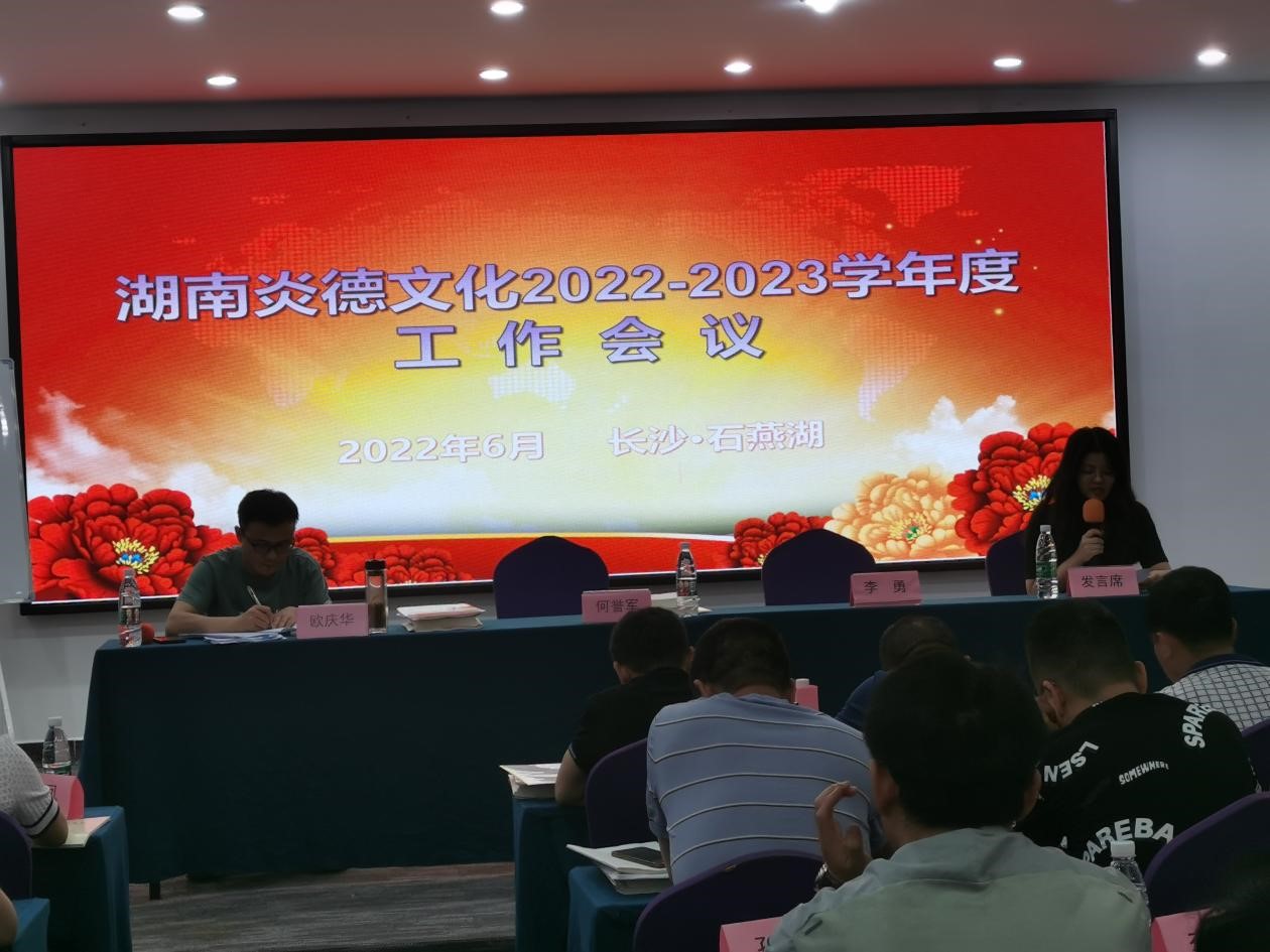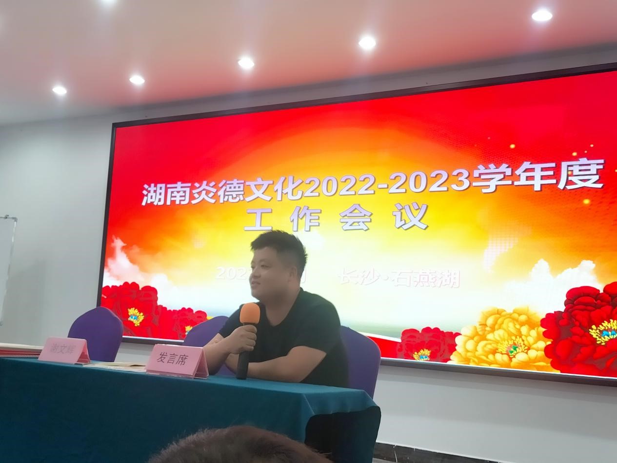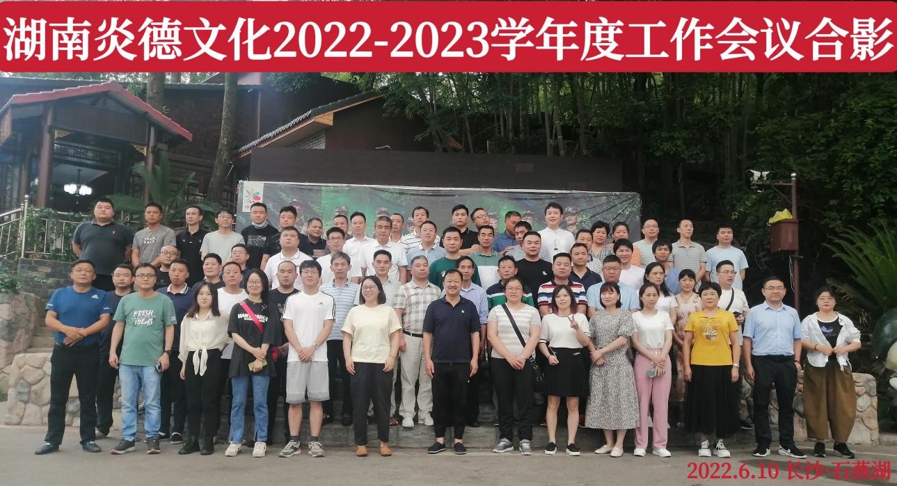 2022年6月9-11日,湖南炎德文化實業有限公司在長沙石燕湖召開2022-2023學年度湖南區域業務工作總結會議。會議由歐慶華先生主持,公司各部門、導學教育及特邀嘉賓、湖南區域全體業務經理參加會議。會上,各部門負責人就公司各項工作進行了總結,對2022-2023學年度工作進行了部署,業務經理代表進行了經驗分享和交流,最后由公司董事長何譽軍先生總結講話。