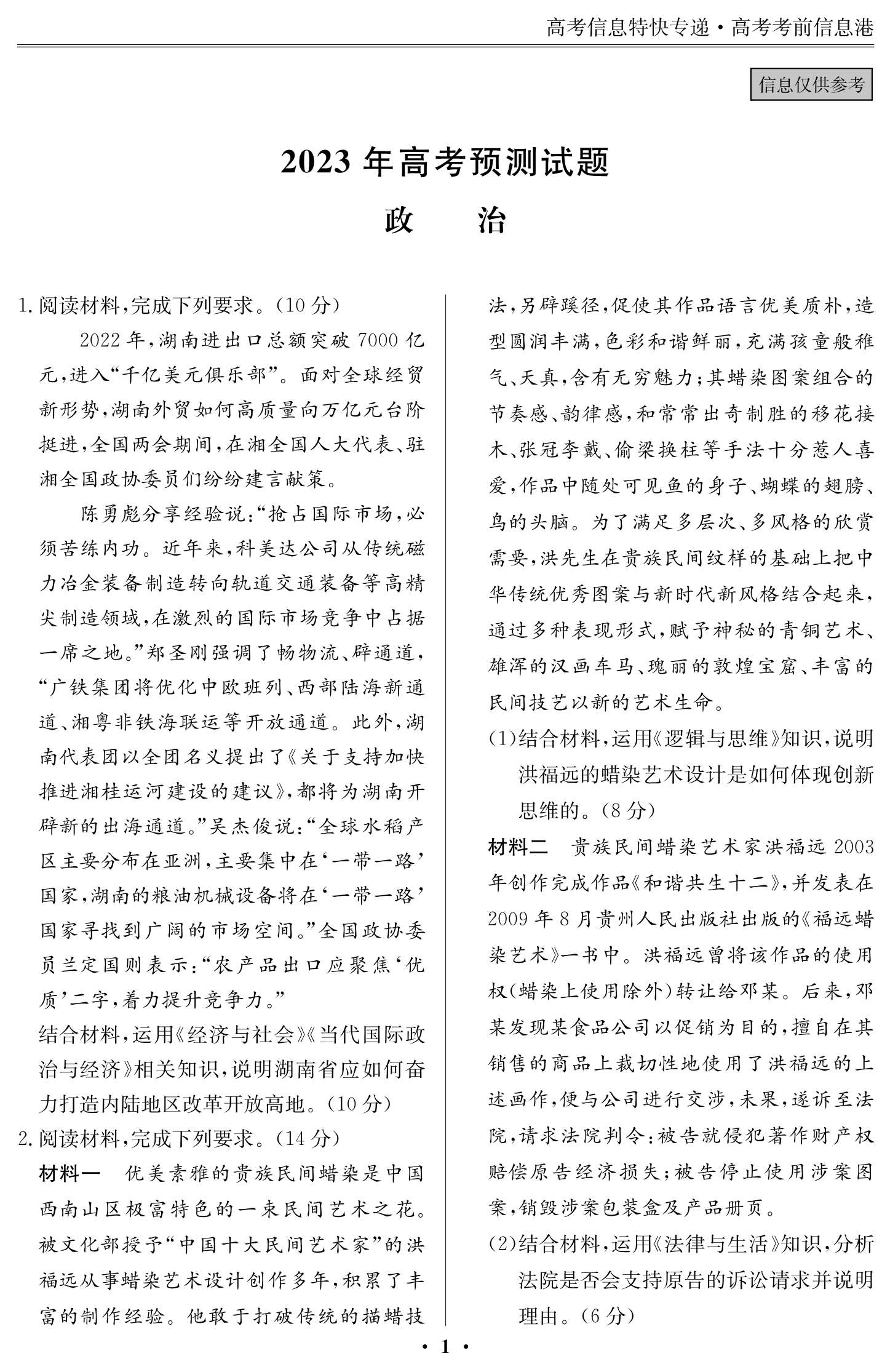2023年高考考前預(yù)測信息補(bǔ)充內(nèi)容(一)5月30日