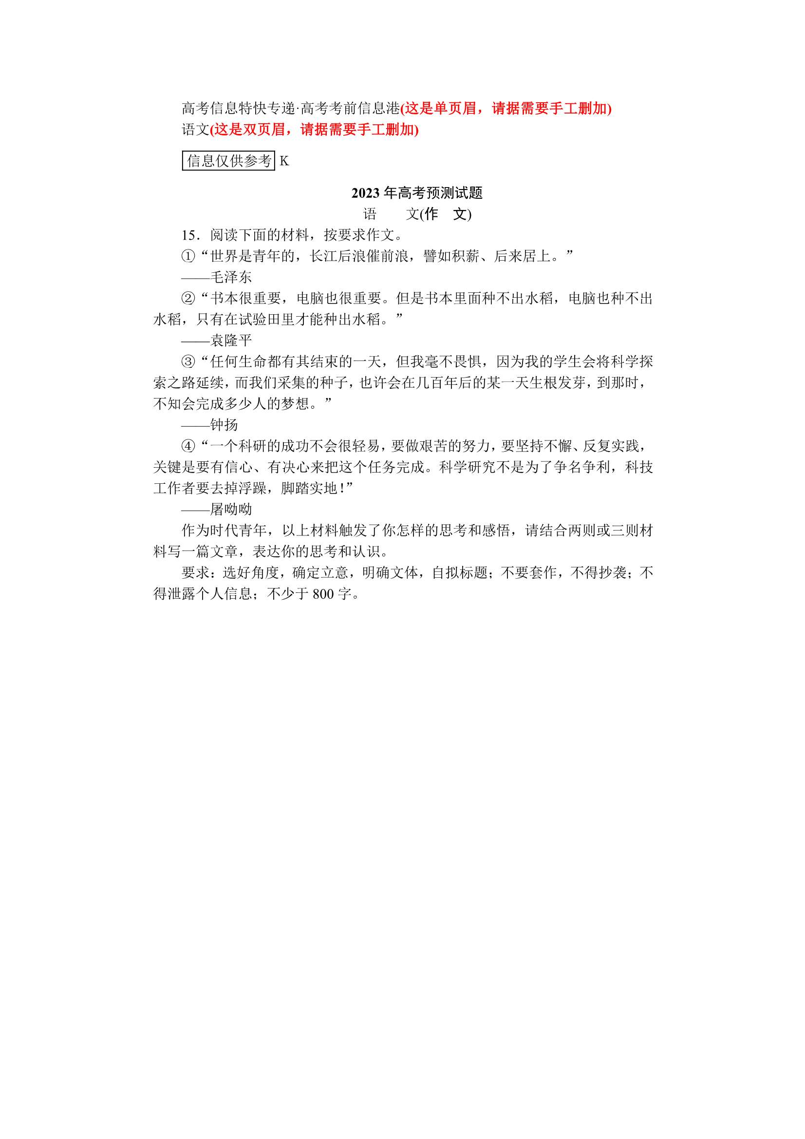上一篇:2023年高考考前預測信息補充內容(二)6月1日