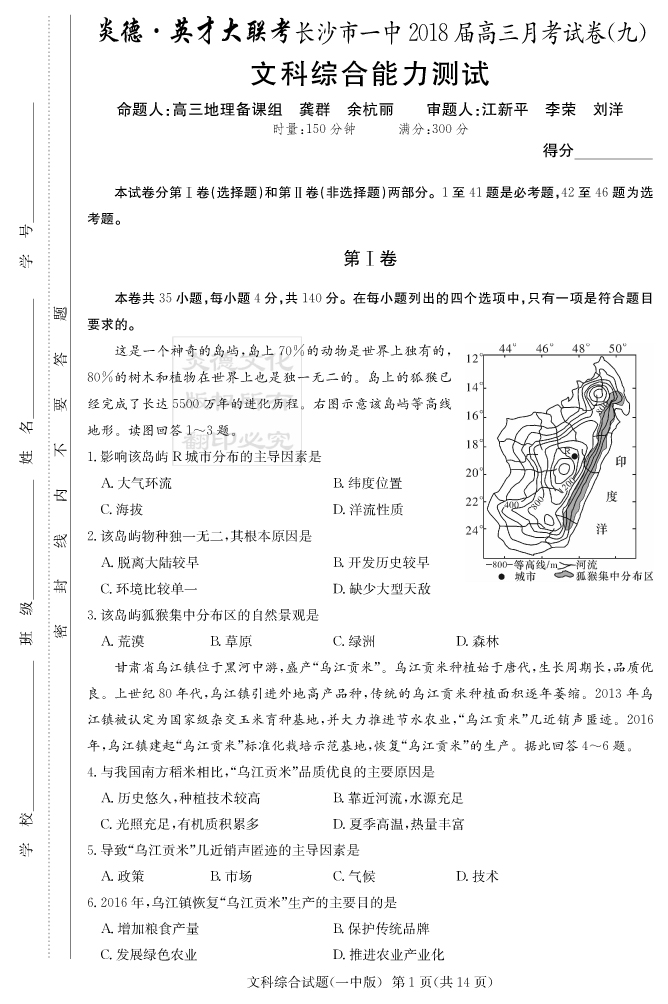2025長郡中學新高考考前小題沖刺訓練·地理